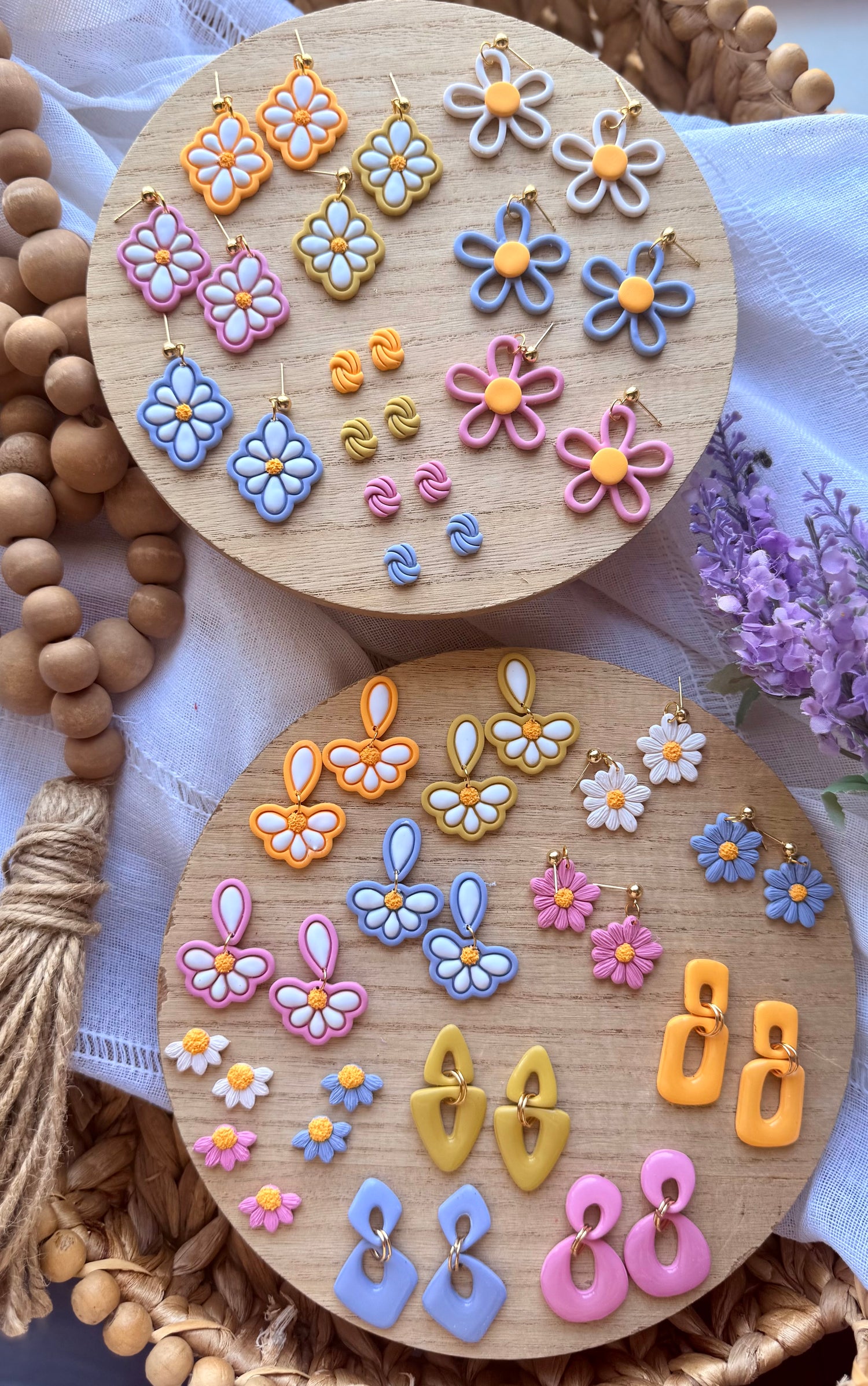 Soft pastels, blooming florals, and sunshine-inspired hues come together in the sweetest spring lineup. The Pocket Full of Daisies Collection is filled with playful polymer clay earrings designed to bring a little joy to your everyday style.